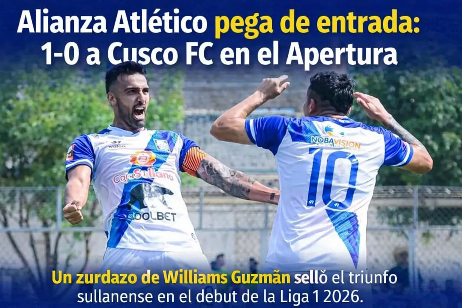 Alianza Atlético derrotó por 1-0 a Cusco FC este domingo 1 de febrero, en un encuentro correspondiente a la primera fecha del Torneo Apertura de la Liga 1 2026, disputado en territorio norteño y dirigido por el árbitro Jordi Espinoza Valles. El único gol del partido fue anotado por el defensor Williams Guzmán a los 66 minutos del segundo tiempo, tras una jugada de media distancia que definió un partido equilibrado y de escasas diferencias.