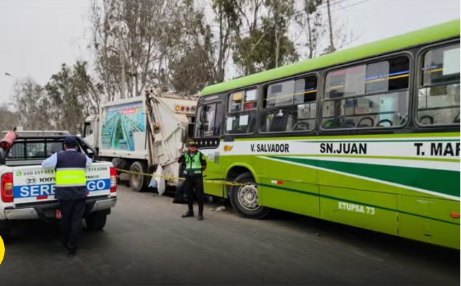 Un trabajador de limpieza falleció luego de que un bus de transporte público de la empresa Etupsa impactó contra un camión compactador en la avenida Revolución, en Villa El Salvador (VES).