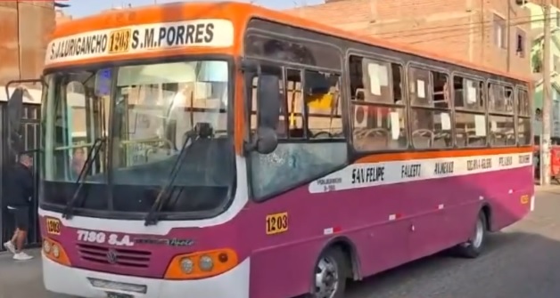 Un nuevo ataque extorsivo se registró contra un bus de transporte público. El hecho se registró en el distrito de San Martín de Porres contra una unidad vehicular de la empresa de transporte «San Germán». El hecho se registró cuando el vehículo se desplazaba por la Av. Germán Aguirre y fue interceptado por dos sujetos, uno de ellos siendo el autor de los disparos y el otro, sobre una moto lineal.