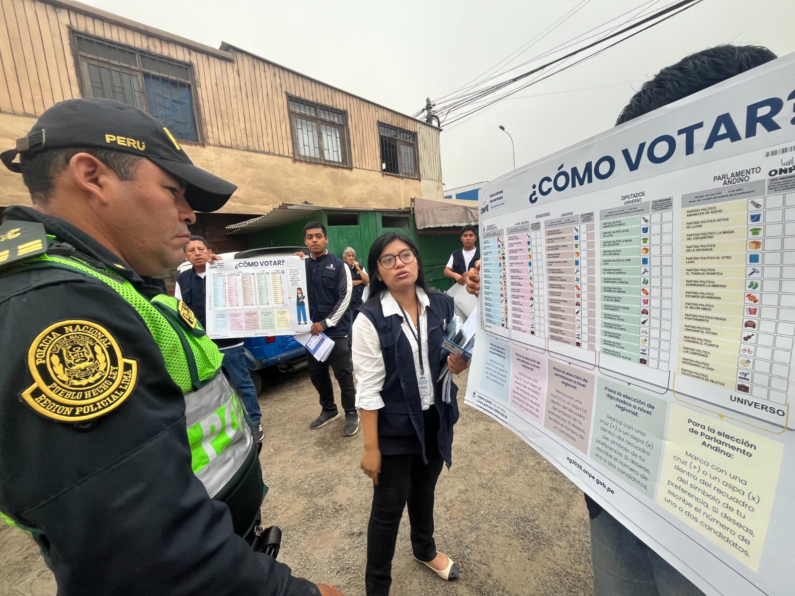 Durante la presente semana, un total de 120 efectivos policiales de las comisarías Mateo Pumacahua y San Genaro, ubicadas en el distrito de Chorrillos, recibieron información sobre el desarrollo del proceso electoral y las funciones que deberán desempeñar antes, durante y después de la jornada electoral, con el objetivo de garantizar condiciones de seguridad en todas sus etapas.