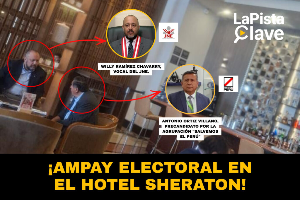 El portal La Pista Clave reveló una imagen captada hace aproximadamente un mes en el lobby del Hotel Sheraton. En ella se observa al magistrado Ramírez —representante del Colegio de Abogados ante el JNE— reunido con Antonio Ortiz Villano, empresario y precandidato de la agrupación «Salvemos al Perú».