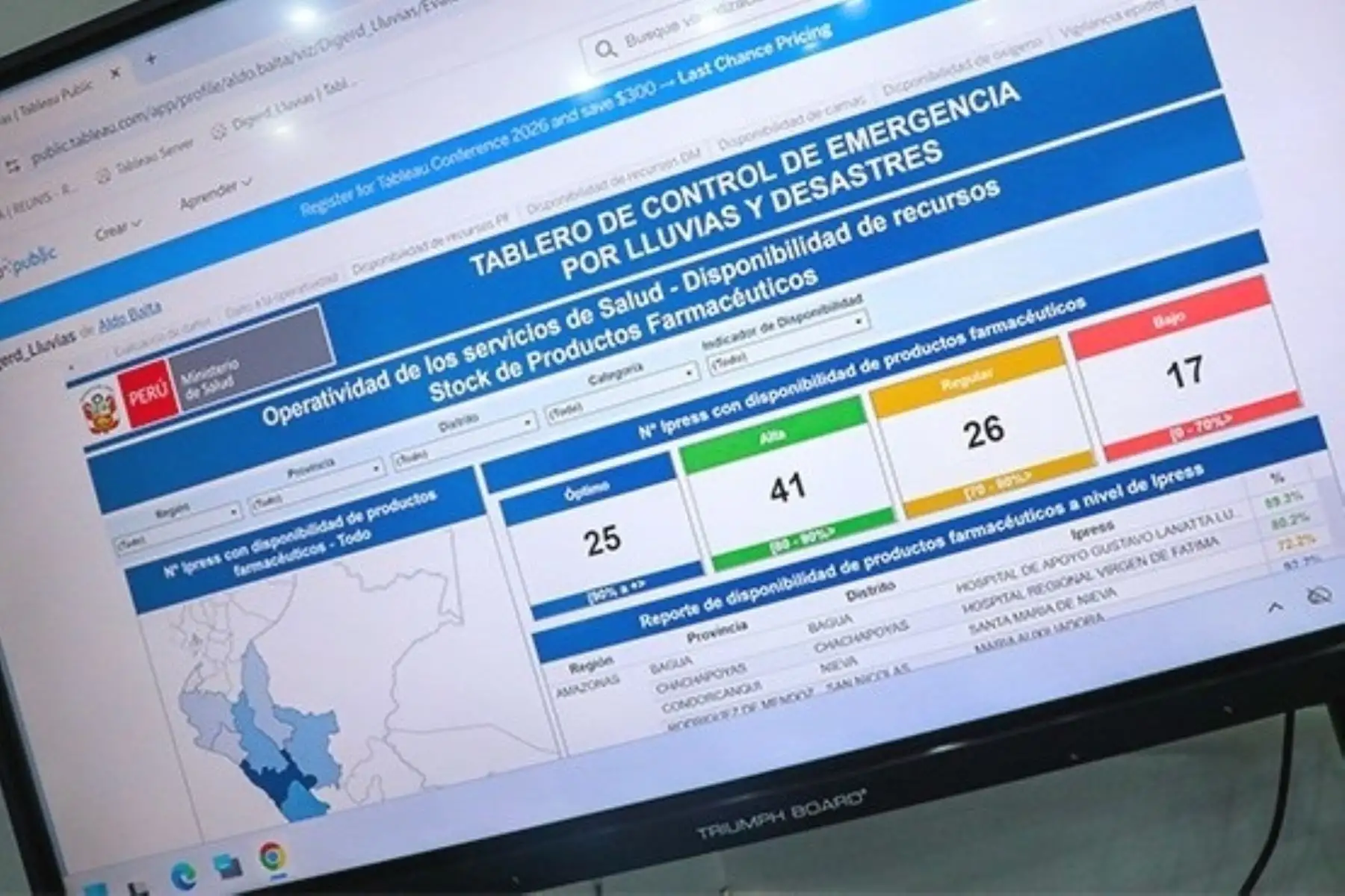 Esta herramienta organiza los datos por departamento, provincia, distrito y establecimiento de salud, y estructura el monitoreo en seis ejes temáticos: