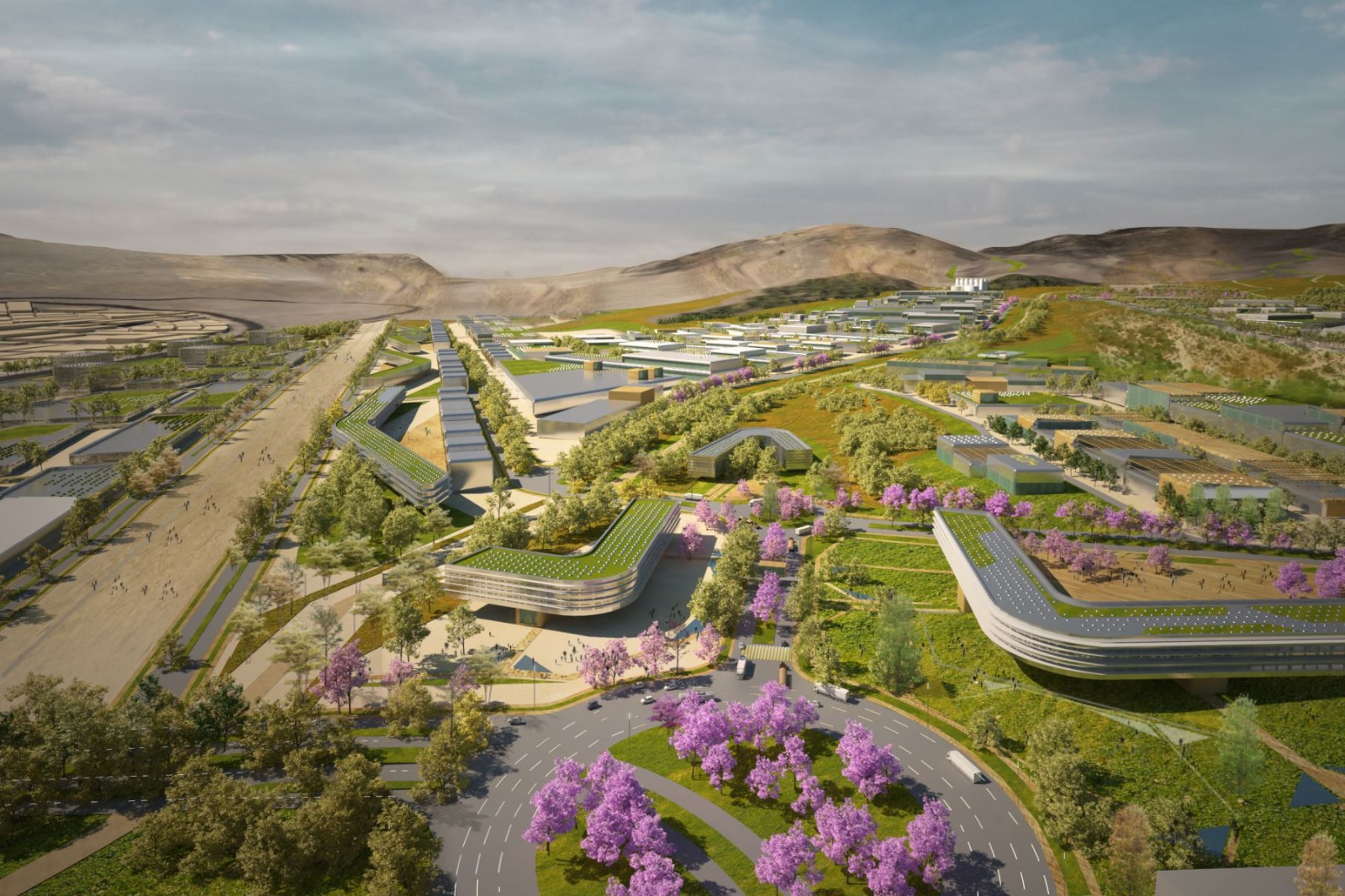 Entre sus componentes destacan 280 hectáreas destinadas a viviendas, un hospital de 26 hectáreas y un parque industrial de 1.338 hectáreas. Además, se destinarán 2.000 hectáreas a áreas verdes, utilizando aguas residuales tratadas para su riego. Se estima que la inversión total superará los 3.000 millones de dólares.