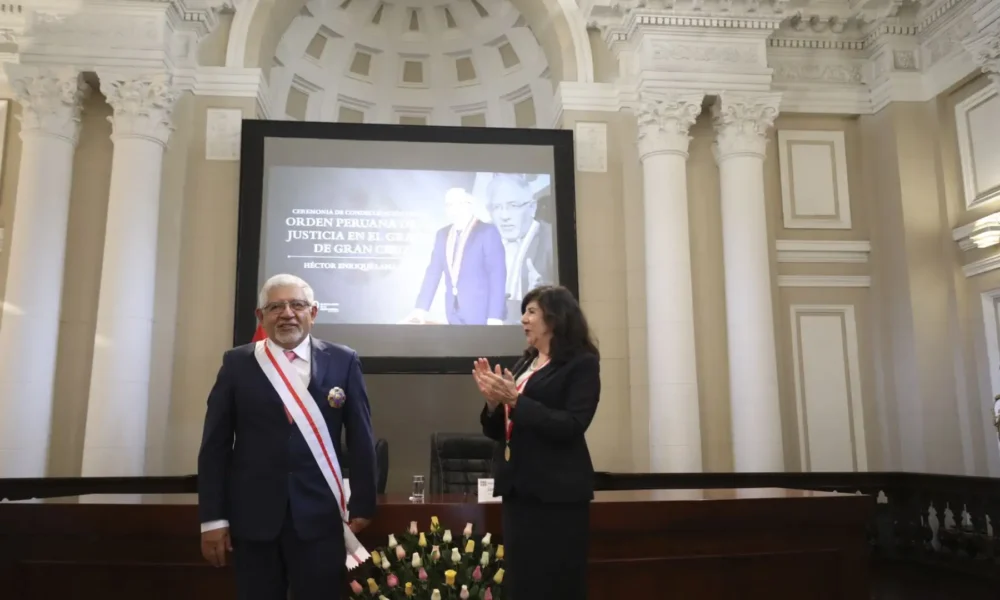 El Poder Judicial, bajo la presidencia de Janet Tello Gilardi, otorgó la Orden Peruana de la Justicia en el grado de Gran Cruz al juez supremo...