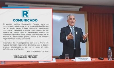 Sergio Bolliger, burgomaestre de Yanahuara, aparece en un video guardando dinero en su despacho. En comunicado el partido de López Aliaga suspende deel partido Renovación Popular...
