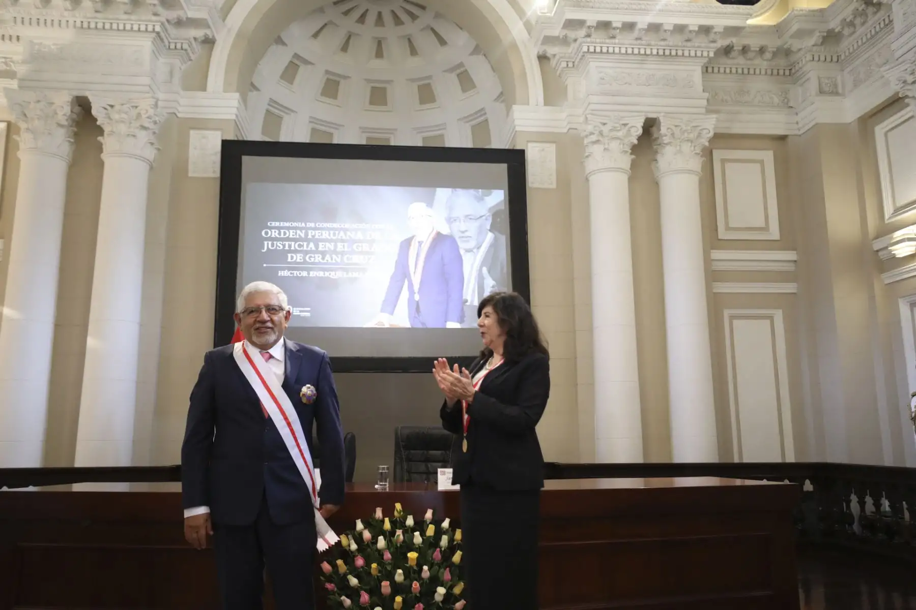 El Poder Judicial, bajo la presidencia de Janet Tello Gilardi, otorgó la Orden Peruana de la Justicia en el grado de Gran Cruz al juez supremo cesante Héctor Enrique Lama More. Esta distinción, la máxima otorgada por la institución, reconoce sus servicios excepcionales y su compromiso con el fortalecimiento del sistema de justicia en el Perú.