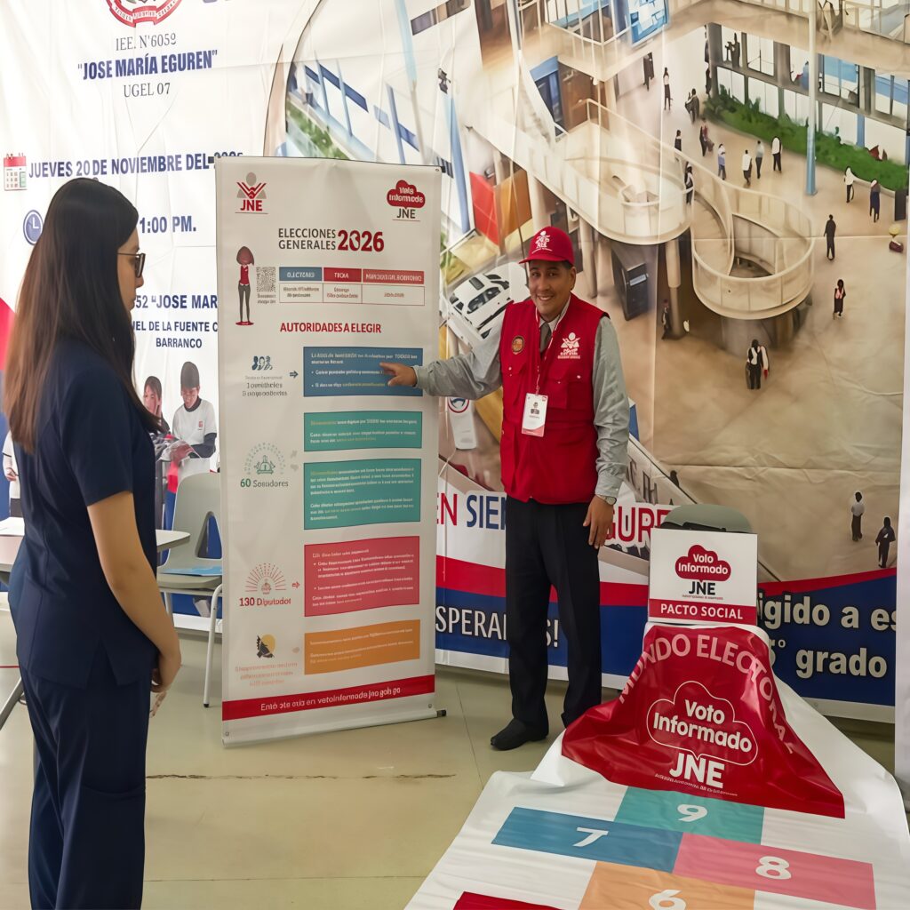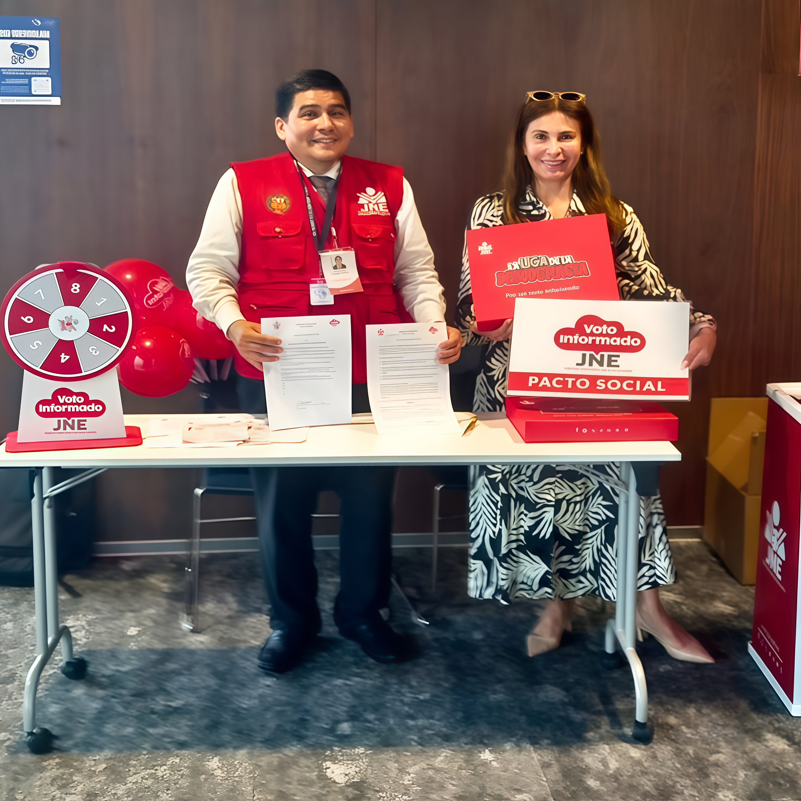 El Jurado Electoral Especial (JEE) Lima Oeste 3, en el marco de las acciones de promoción del Pacto Social “Liga de la Democracia por un Voto Informado”, logró la suscripción de 11 pactos en los distritos de Santiago de Surco, La Molina, Chorrillos y Barranco, iniciativa destinada a ampliar la difusión de información electoral oficial y fortalecer la participación ciudadana de cara a las Elecciones Generales (EG) 2026.