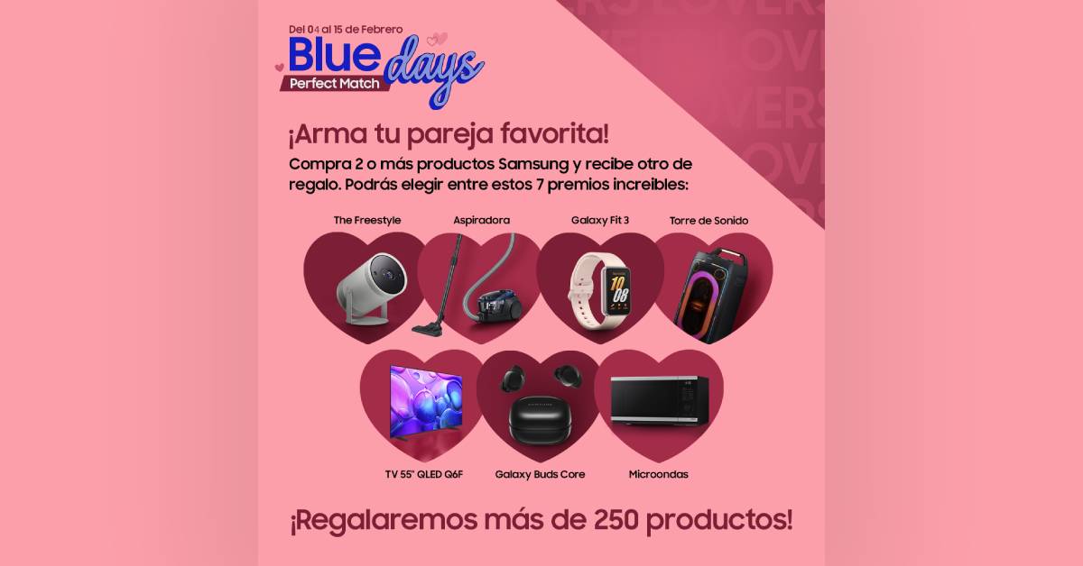 En el marco de las celebraciones por el Día del Amor y la Amistad en febrero de 2026, Samsung anunció la tercera edición de su campaña especial Blue Days. Bajo la temática “Perfect Match”, esta iniciativa busca incentivar la renovación tecnológica ofreciendo regalos exclusivos a los usuarios que combinen innovación y diseño en sus compras. La campaña estará vigente del 4 al 15 de febrero y es válida en todas las tiendas físicas, retails autorizados y plataformas de venta online a nivel nacional.