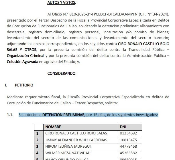 La investigación señala a Ciro Castillo como presunto líder de una organización criminal que habría generado un perjuicio económico al Estado ascendente a S/ 1,461,121.10. Según la PNP, las diligencias culminarán pasadas las 6:00 p. m. de este 15 de diciembre. Finalmente, la autoridad policial confirmó que el gobernador regional no ha salido del país, por lo que su ubicación continúa siendo prioridad para las fuerzas del orden.